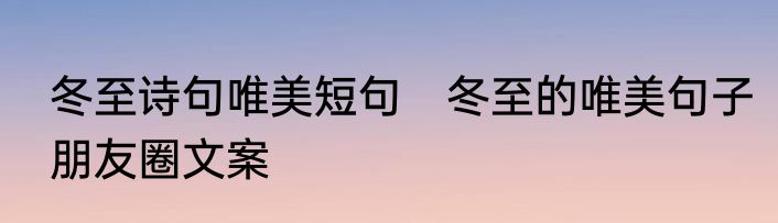 冬至诗句唯美短句 冬至的唯美句子朋友圈文案