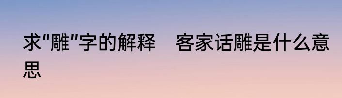 求“雕”字的解释 客家话雕是什么意思