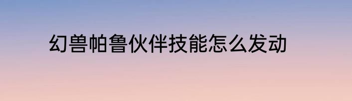 幻兽帕鲁伙伴技能怎么发动