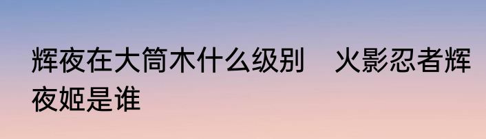 辉夜在大筒木什么级别 火影忍者辉夜姬是谁