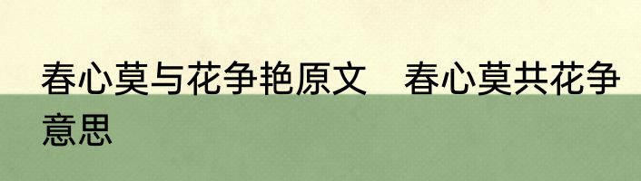 简介春心莫与花争艳原文?“春心莫与花争发,一寸相思一寸灰!”出自唐代李商隐的《无题·飒飒东风细雨来》解释:向往美好爱情的心愿切莫和春花