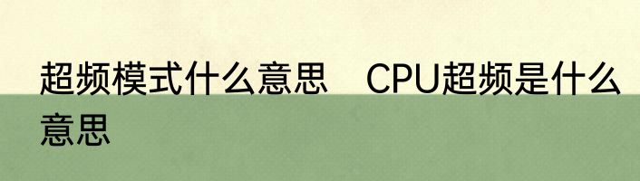 超频模式什么意思?