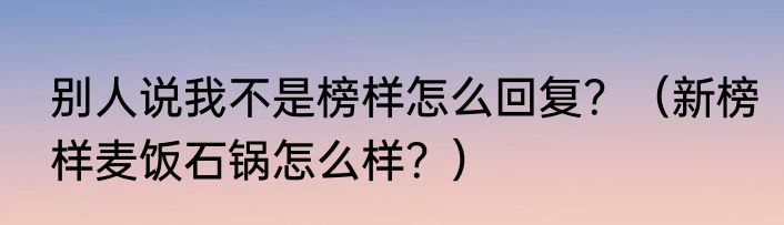 别人说我不是榜样怎么回复?(新榜样麦饭石锅怎么样?)