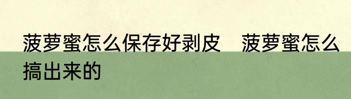菠萝蜜怎么保存好剥皮 菠萝蜜怎么搞出来的