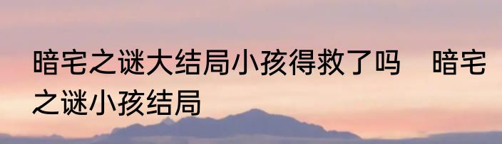 暗宅之谜大结局小孩得救了吗?