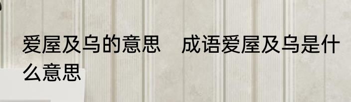 爱屋及乌的意思 成语爱屋及乌是什么意思