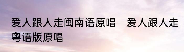 爱人跟人走闽南语原唱 爱人跟人走粤语版原唱