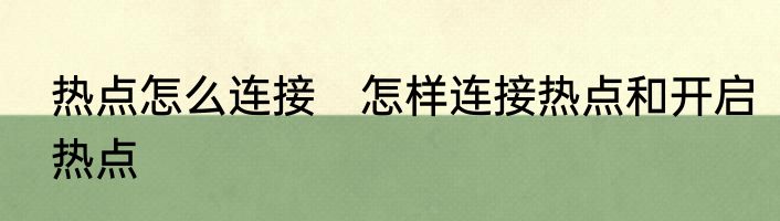 热点怎么连接 怎样连接热点和开启热点