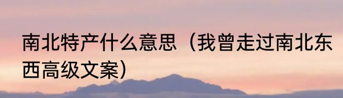 简介南北特产什么意思?只在南方和北方各自才有的专属食物或者文化我曾走过南北东西高级文案?我曾走过南北东西,感受世界的辽阔与多样。南方的