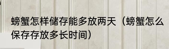 螃蟹怎样储存能多放两天(螃蟹怎么保存存放多长时间)