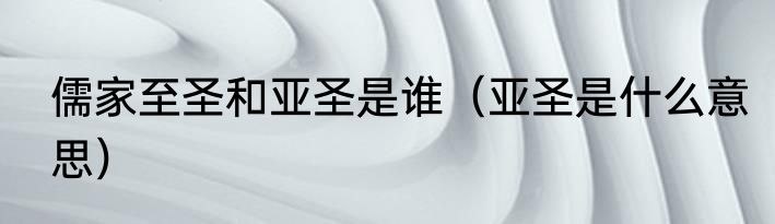 儒家至圣和亚圣是谁(亚圣是什么意思)