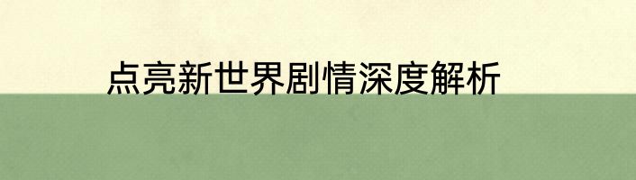 简介点亮新世界剧情深度解析?点亮新世界剧情深度较浅因为点亮新世界是一款休闲游戏,游戏的主线剧情相对简单,玩家需要通过不断的完成任务和收