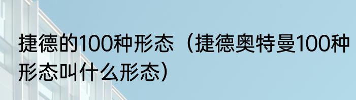 捷德的100种形态(捷德奥特曼100种形态叫什么形态)