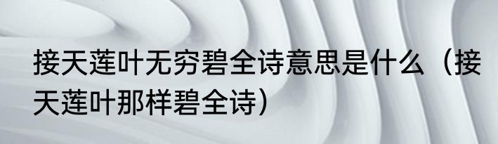 接天莲叶无穷碧全诗意思是什么(接天莲叶那样碧全诗)