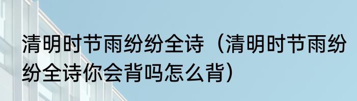 清明时节雨纷纷全诗(清明时节雨纷纷全诗你会背吗怎么背)