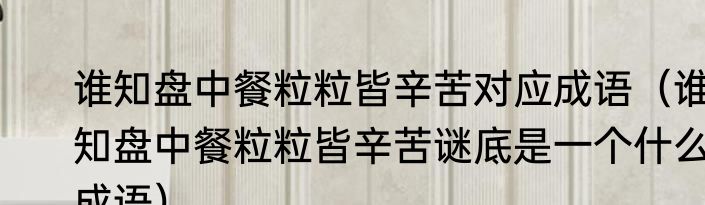 谁知盘中餐粒粒皆辛苦对应成语(谁知盘中餐粒粒皆辛苦谜底是一个什么成语)