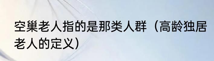 空巢老人指的是那类人群(高龄独居老人的定义)
