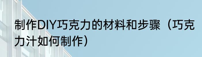 制作DIY巧克力的材料和步骤(巧克力汁如何制作)