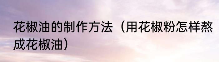 花椒油的制作方法(用花椒粉怎样熬成花椒油)