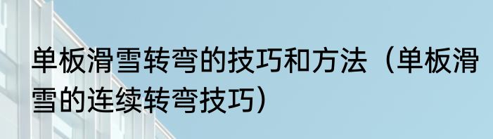 单板滑雪转弯的技巧和方法(单板滑雪的连续转弯技巧)