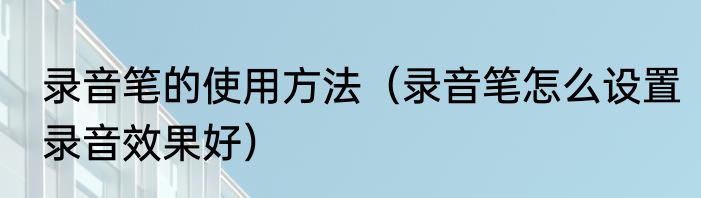 录音笔的使用方法(录音笔怎么设置录音效果好)