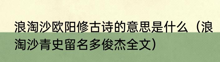 浪淘沙欧阳修古诗的意思是什么(浪淘沙青史留名多俊杰全文)