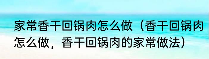 家常香干回锅肉怎么做(香干回锅肉怎么做,香干回锅肉的家常做法)