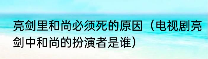 亮剑里和尚必须死的原因(电视剧亮剑中和尚的扮演者是谁)
