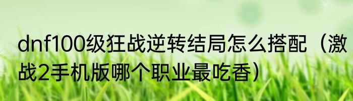 dnf100级狂战逆转结局怎么搭配(激战2手机版哪个职业最吃香)