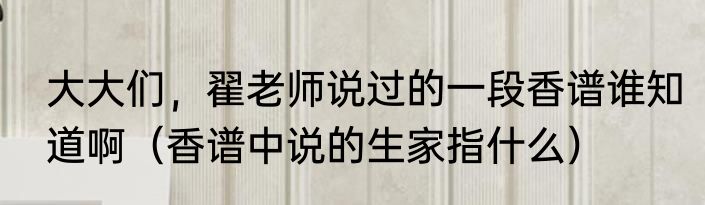 大大们,翟老师说过的一段香谱谁知道啊(香谱中说的生家指什么)