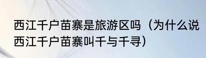 西江千户苗寨是旅游区吗(为什么说西江千户苗寨叫千与千寻)