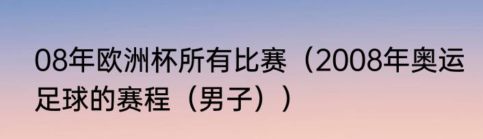 08年欧洲杯所有比赛(2008年奥运足球的赛程(男子))