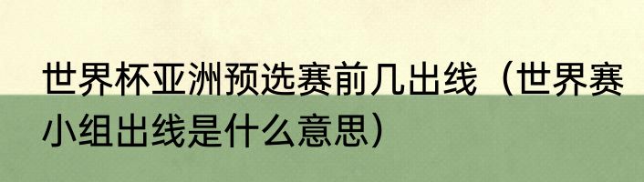 世界杯亚洲预选赛前几出线(世界赛小组出线是什么意思)