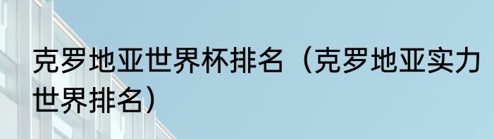 克罗地亚世界杯排名(克罗地亚实力世界排名)