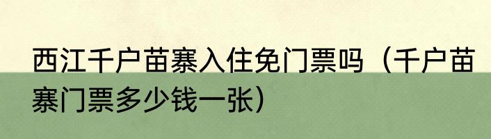 西江千户苗寨入住免门票吗(千户苗寨门票多少钱一张)