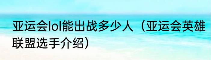 简介亚运会lol能出战多少人?亚运会lol每场比赛上场能出站5个人,可以有一名替补。在2018年的雅加达亚运会正式引进电子竞技作为表演赛项目后,L