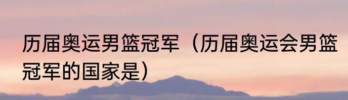 历届奥运会男篮冠军的国家是?