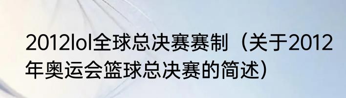 2012lol全球总决赛赛制(关于2012年奥运会篮球总决赛的简述)
