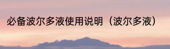 简介必备波尔多液使用说明?波尔多液是低毒农药,属于保护性杀菌剂,药剂不进入植物内部,防治对象是辣椒,使用方法是喷雾,对水生生物有毒要尽