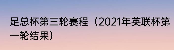 足总杯第三轮赛程(2021年英联杯第一轮结果)