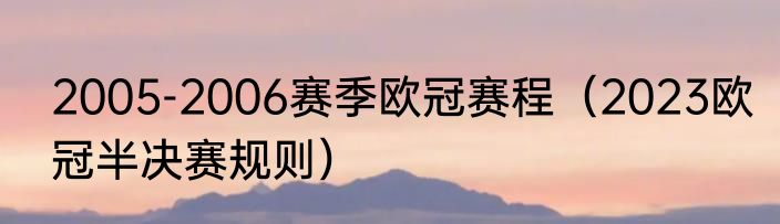 2005-2006赛季欧冠赛程(2023欧冠半决赛规则)