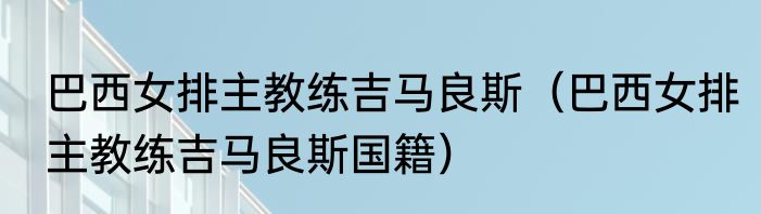 巴西女排主教练吉马良斯(巴西女排主教练吉马良斯国籍)