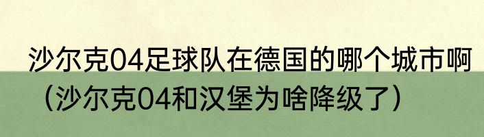 沙尔克04足球队在德国的哪个城市啊(沙尔克04和汉堡为啥降级了)