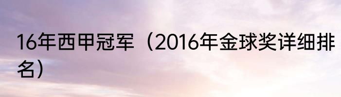 16年西甲冠军(2016年金球奖详细排名)