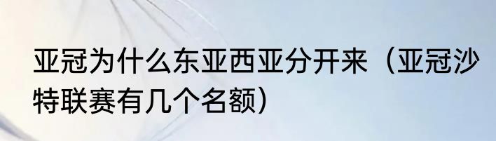 亚冠为什么东亚西亚分开来(亚冠沙特联赛有几个名额)