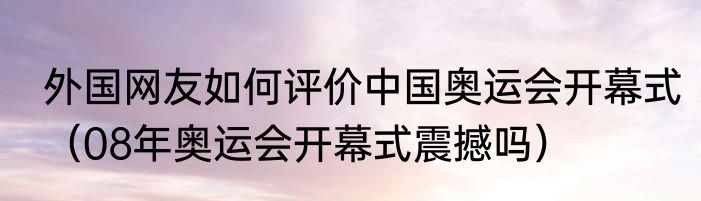 简介外国网友如何评价中国奥运会开幕式?外国人肯定会觉得很震撼了,我们竟然能举办出很不错的奥运会了。08年奥运会开幕式震撼吗?震撼2008年北