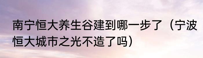 南宁恒大养生谷建到哪一步了(宁波恒大城市之光不造了吗)