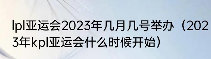 lpl亚运会2023年几月几号举办(2023年kpl亚运会什么时候开始)