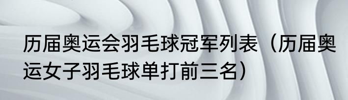 历届奥运会羽毛球冠军列表(历届奥运女子羽毛球单打前三名)