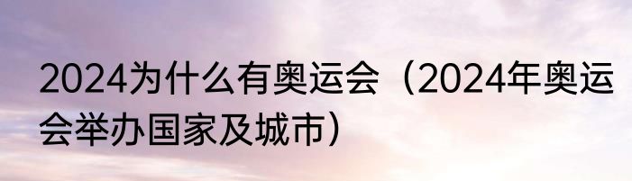 2024为什么有奥运会(2024年奥运会举办国家及城市)